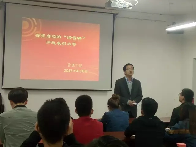 4月8日晚,威廉希尔williamhill在15教323会议室举办寻找身边的“活雷锋”评选表彰大会。本次活动由2015级辅导员上官万成老师和60余名员工参加。