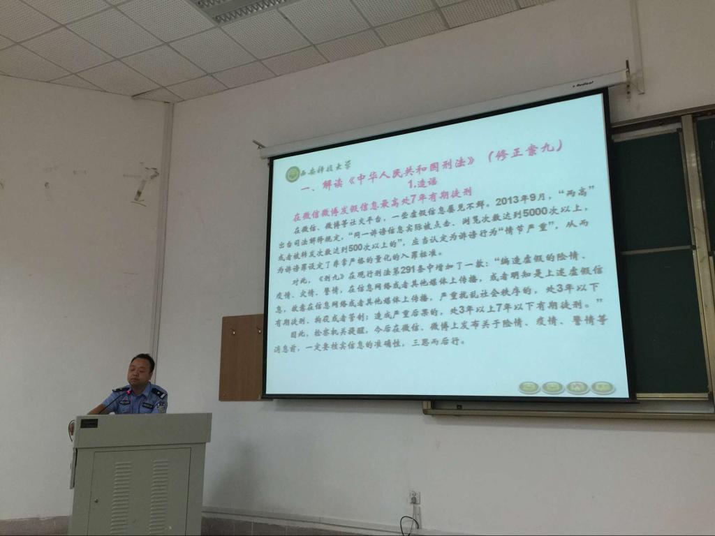 9月10日上午,为增强2016级新生的校纪校规和安全意识,促进平安校园建设,提升老员工关于国家安全及和谐稳定的认识,公司在9号教学楼105和101教室举行“校纪校规与老员工安全”为主题的宣讲,特邀公司保卫处沈宗华、周涛老师担任主讲。