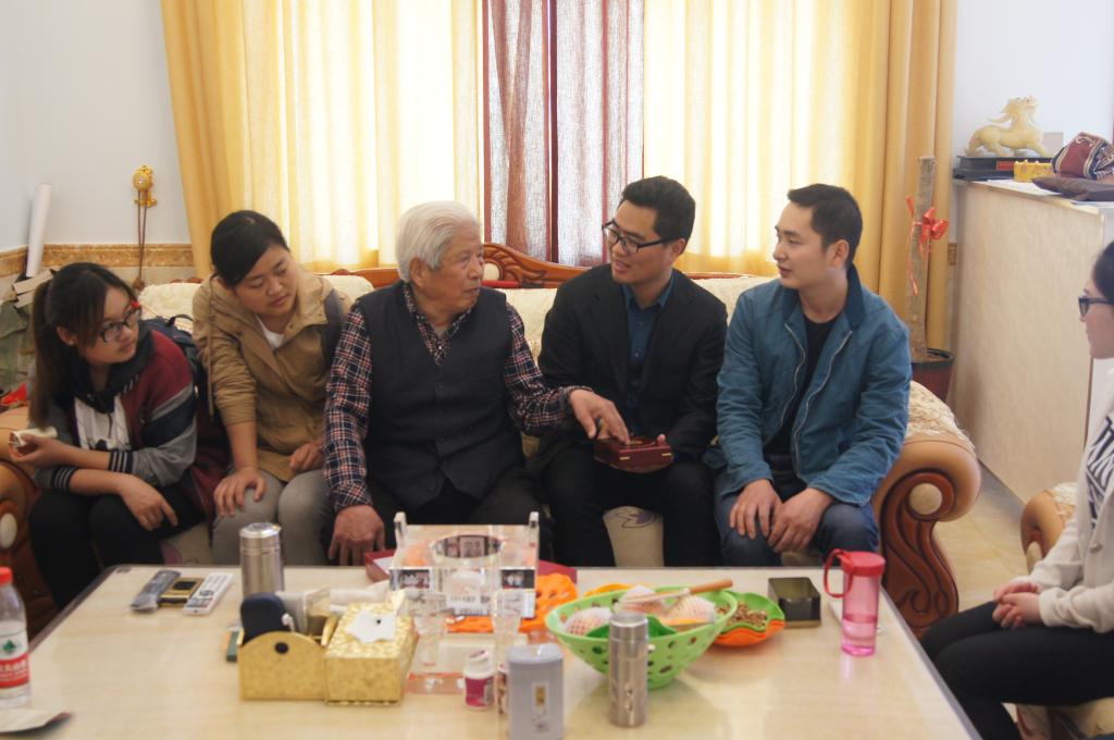 威廉希尔williamhill辅导员王抢以及47期2015级高级党校学员代表带着爱心牛奶和水果来到了东大街社区,短暂的参观与了解社区工作之后,在社区办公室副主任郭兴旺带领下,管院师生一行来到老红军邢元昌家中。邢老对同学们的到来感到非常高兴,热情地给同学们讲革命故事,老人讲述的亲身经历深深的吸引了在场的所有同学。邢老放映他宣讲十八届五中全会精神的视频,幽默风趣的演讲,让同学们对会议精神有了更深入的理解,并且送给每位同学一本自传,书名《老兵浩歌》。邢老创办临潼华乐学校以及郝邢村文化站、图书室,热衷于公益事业,时刻把群众利益放在第一位。同学们为老人表演了红歌合唱,舞蹈等节目。