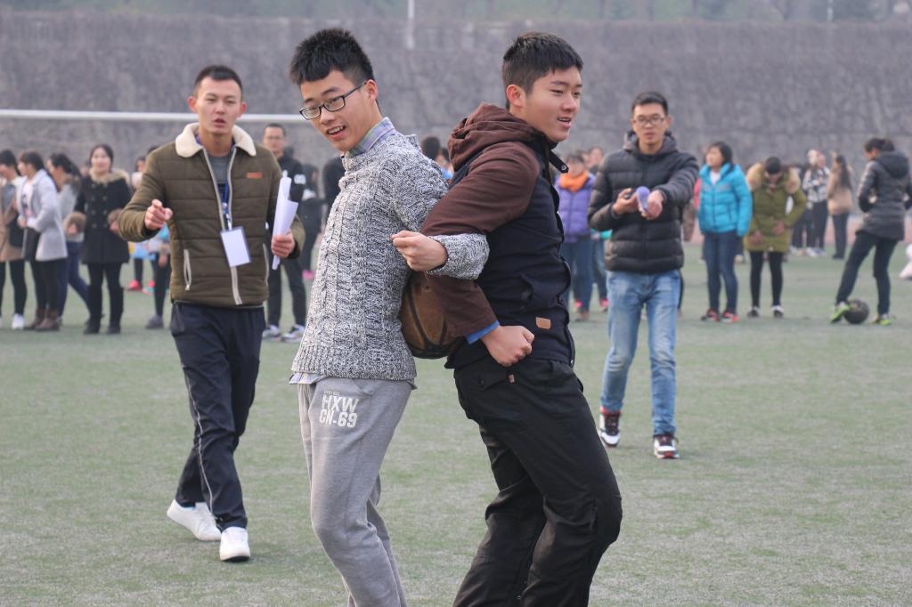 运动会以“走下网络,走出宿舍,走向操场”为主题,包括“心有灵犀”“齐心协力”“背部运球”“摇大绳”“跳绳接力”等5个项目,经过角逐最终评选出团体一等奖2个班: 工程管理1502班, 信息管理1501班;团体二等奖: 工程管理1503班, 信息管理1502班, 物流管理1502班;团体三等奖: 旅游管理1501班, 会计学1501班, 电子商务1502班, 工商管理1501班;精神文明奖:物流管理1501班。
