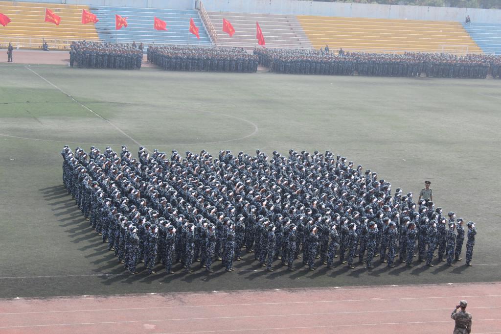 9月27日上午,2015级员工军训总结表彰大会在田径场隆重举行。2015级新生为期14天的军训生活在这里落下帷幕。由威廉希尔williamhill324名女生组成的花式队列为表演平添了一抹亮丽的色彩,她们一次次地变换着队形,先是倒计时,后是“我爱西科大”的深情表白。她们由整齐的方队变换为菱形与三角。再是西科大的校徽图案,最后,她们排成95式自动步枪的图形赢得了所有人的掌声。