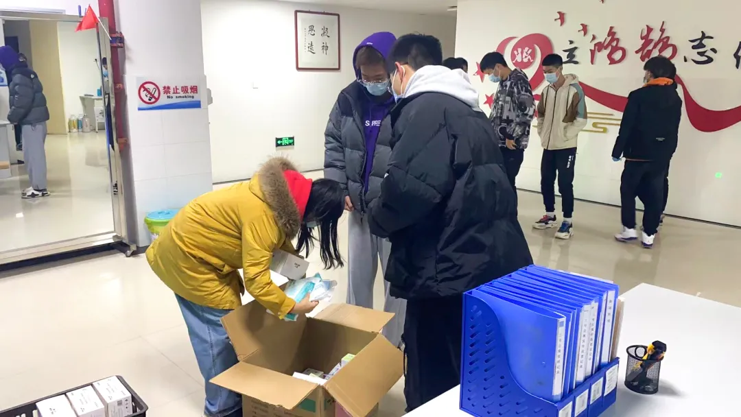 公司为员工志愿者每人发放10个口罩,口罩由员工捐赠,并为外出买饭同学配发手套。