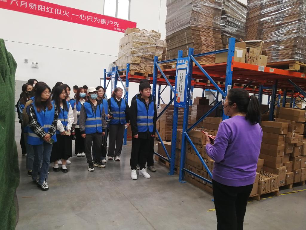 在辉煌物流人力总监刘婵领下,学院师生一行参观了公司旗下的蜜雪冰城原料储存仓、电商云仓等两大基地,深入了解了物流一线工作场景,切身体验、熟悉了物流仓储的工作环境、工作流程与岗位职能。