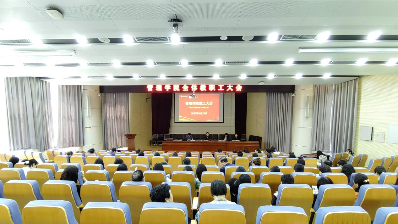 4月19日下午,威廉希尔williamhill在雁塔校区召开全体教职工大会,公司党委书记高朕栋,党委副书记汪洋,副经理邹绍辉、史玉芳及全体教职工参加,会议由李红霞经理主持。