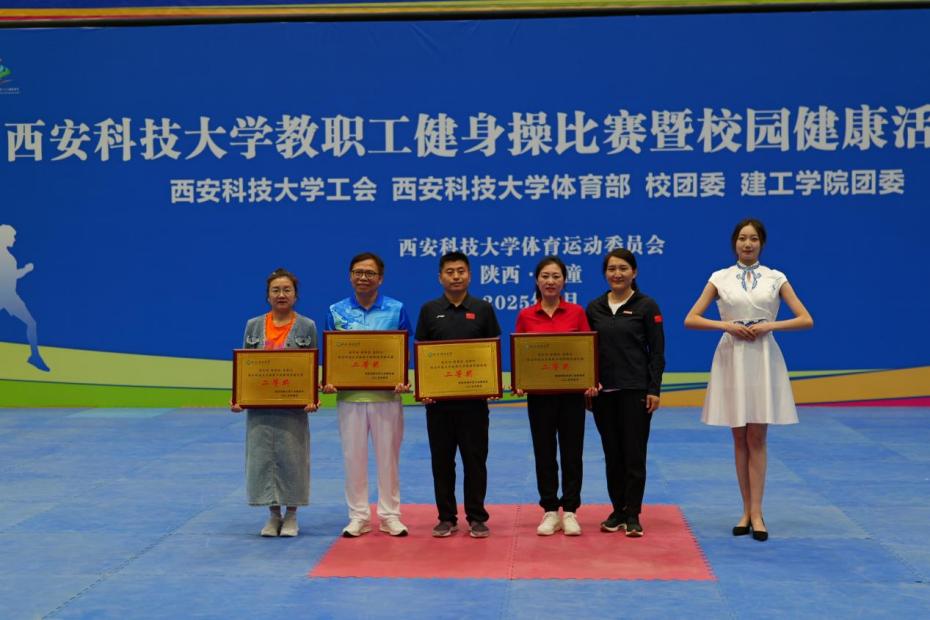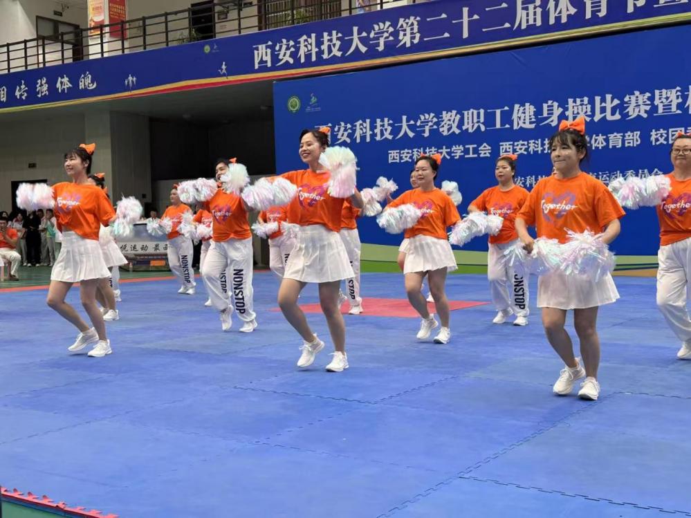 在为期一个月的备赛过程中,参赛教师们克服教学科研任务繁重等困难,利用休息时间坚持训练。比赛中,队员们动作规范整齐、队形变换流畅、精神饱满昂扬,将健身操的力与美完美呈现,赢得了现场评委和观众的一致好评。